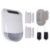 The very simple to Fit HY Solar Wireless House Alarm Kit 2 using a Solar Wireless Siren (which doubles up as a Control Panel) and is Armed & Disarmed using the Remote Controls (supplied with 3 x Magnetic Contacts & 1 x Smoke & Heat Sensor), no need for any Electric Power Supply.