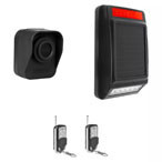 600m Range. "Smart Design" Battery Powered Motion Detector. Detection Range: 10-15 metres. Solar-Powered Siren. Two Modes: Siren (Intrusion Alert) or Chime (Visitor Notification). Flashing Light Alert.