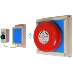 Wireless Commercial Protect-800 Bell Kit comprising of a Heavy Duty Push Button, Battery Powered 800 metre Transmitter & unique Wireless Receiver (with fully adjustable output durations) and a Loud Ringing Bell. Ideal for Warehouses, Yards and other commercial applications.