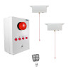 Wireless Commercial Protect-800 Siren Kit comprising of a Heavy Duty Push Button, Battery Powered 800 metre Transmitter & unique Wireless Receiver (with fully adjustable output durations) and two adjustable Sirens. Ideal for Warehouses, Yards and other commercial applications.